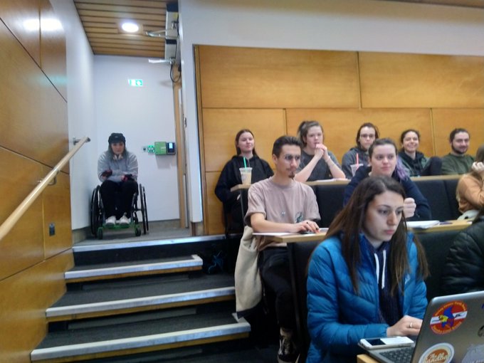 סטודנטית נכה באנגליה נאלצה לצפות בהרצאה ממעלה המדרגות